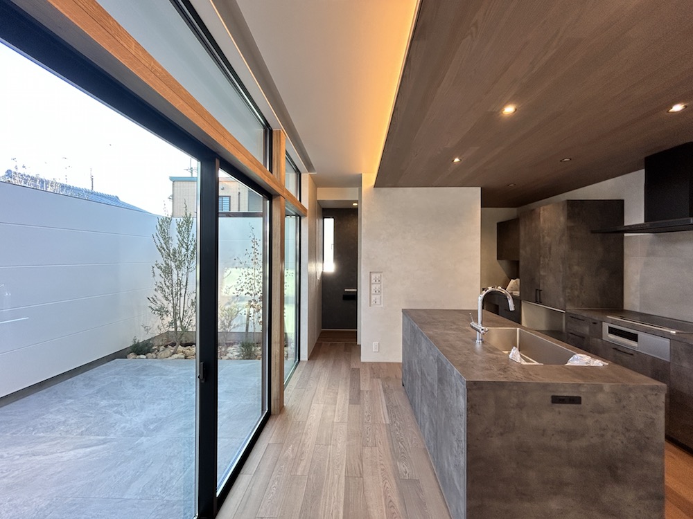 リビングに面して、中庭とライトコートの2つのお庭のあるお住まいになります。プライバシーを確保しながらも、広がりがあったり、外とのつながりのある豊かなお住まいとなります。