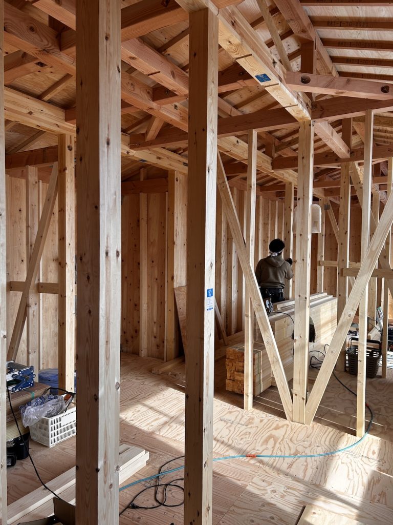 奈良の家_コートハウスは中間検査を受け、無事合格いたしました。構造金物の配置と強度の確認、耐力壁、筋交いの確認、火打梁の確認など1つ1つ確認していきました。順調に進んでおり、何よりです。